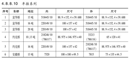 | 序(xù)号 | 車橋(qiao) | 噸位 | 内 | 外(wài)形尺寸(mm) | 外 | 外形(xíng)尺寸(mm) |