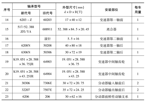 | 序号 | 軸承(chéng)型号 | 外形(xíng)尺寸(mm) | 安裝(zhuang)部位 | 每車(che)用量 | |