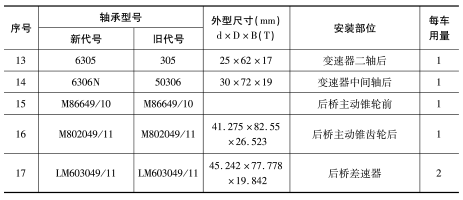 | 序号 | 軸承型(xíng)号 | 外形尺寸(cùn)(mm) | 安裝部位 | 每車用量 | |