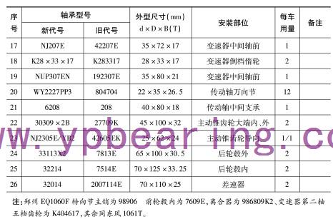| 序号 | 軸(zhóu)承型号 | 外形(xíng)尺寸(mm) | 安裝部(bù)位 | 每車用量(liang) | |
