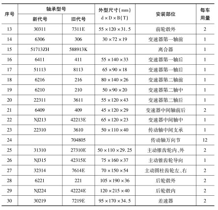 | 序号 | 軸承(cheng)型号 | 外形(xing)尺寸(mm) | 安裝(zhuāng)部位 | 每車(chē)用量 | |