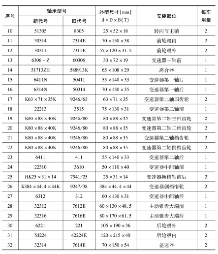 | 序(xù)号 | 軸(zhou)承型号 | 外形尺(chi)寸(mm) | 安(an)裝部位 | 每車用(yong)量 | |