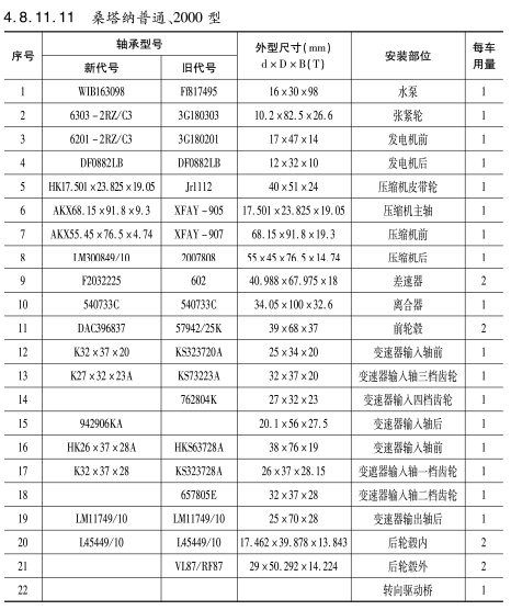 | 序号 | 軸承型(xíng)号 | 外(wai)形尺寸(mm) | 安裝部(bù)位 | 每(mei)車用量 | |